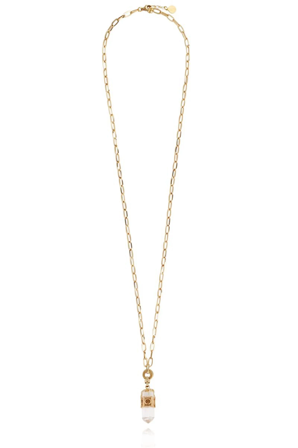 Aventura Serti necklace features a gilded long metal chain adorned with a hard stone.