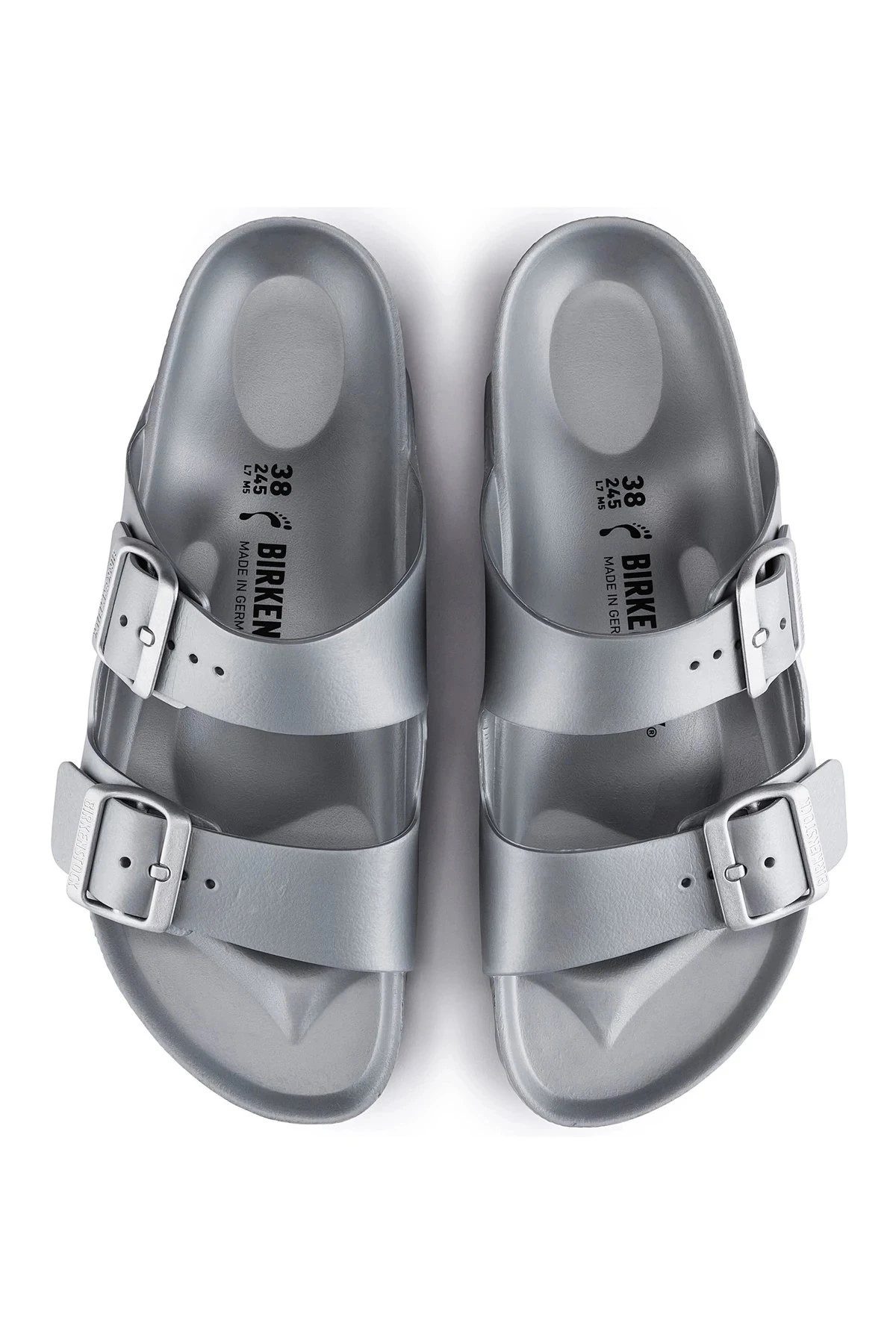 Arizona Essentials Eva slide is an individually adjustable unisex two-strap sandal that are shock absorbent, waterproof and skin-friendly. Features an anatomically shaped footbed which has an integrated latex foam cushion, and an outsole made with EVA which is a high-quality, very light, elastic material with extremely good cushioning. Also features wide straps with individually adjustable metal pin buckles.