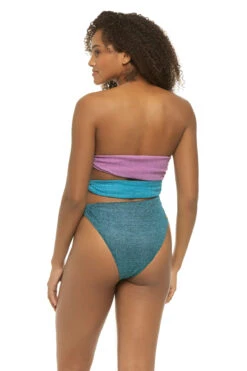 Crepe one piece swimsuit features a textured jersey fabric with a cutout detail at the waist and an asymmetrical neckline.
