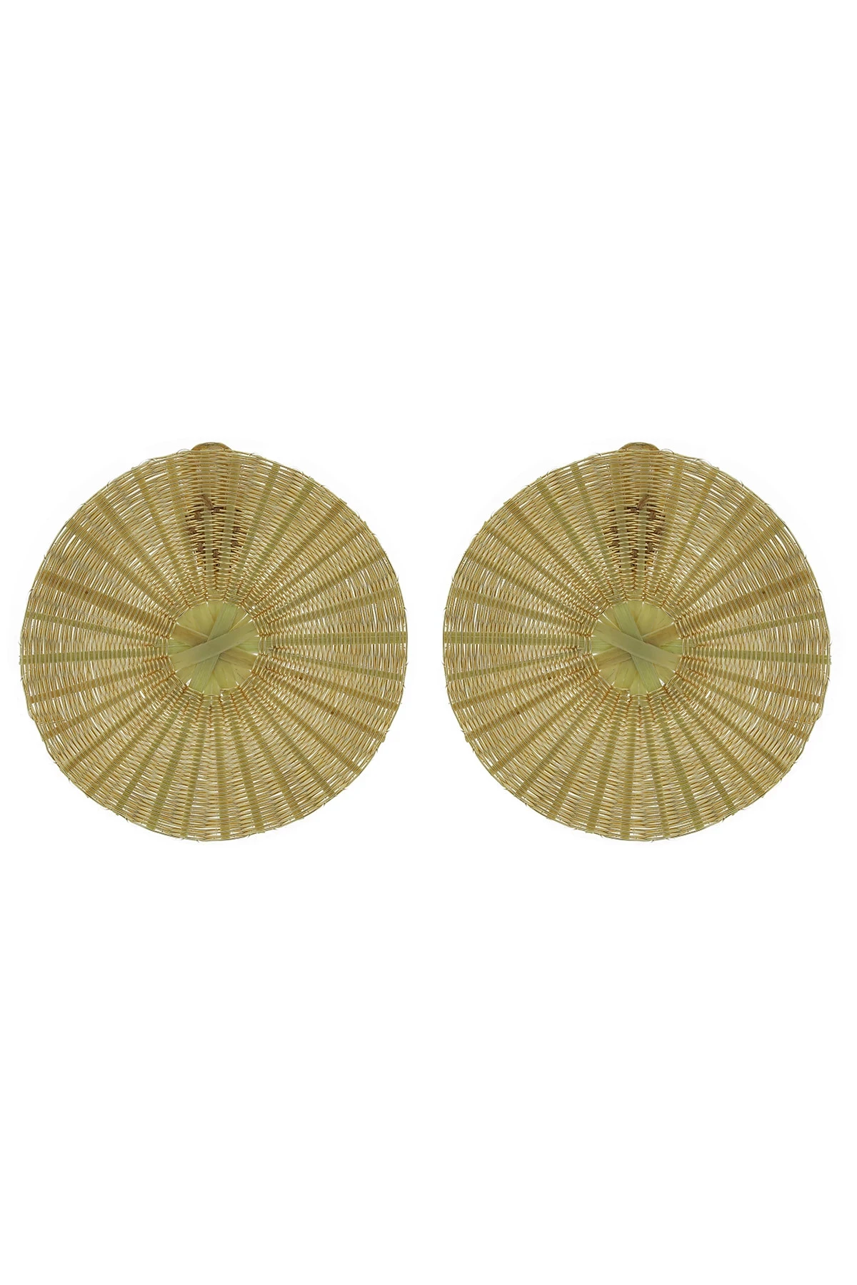 Gold plated bronze earrings featuring woven horse hair circular detail. Clip-on fastener.