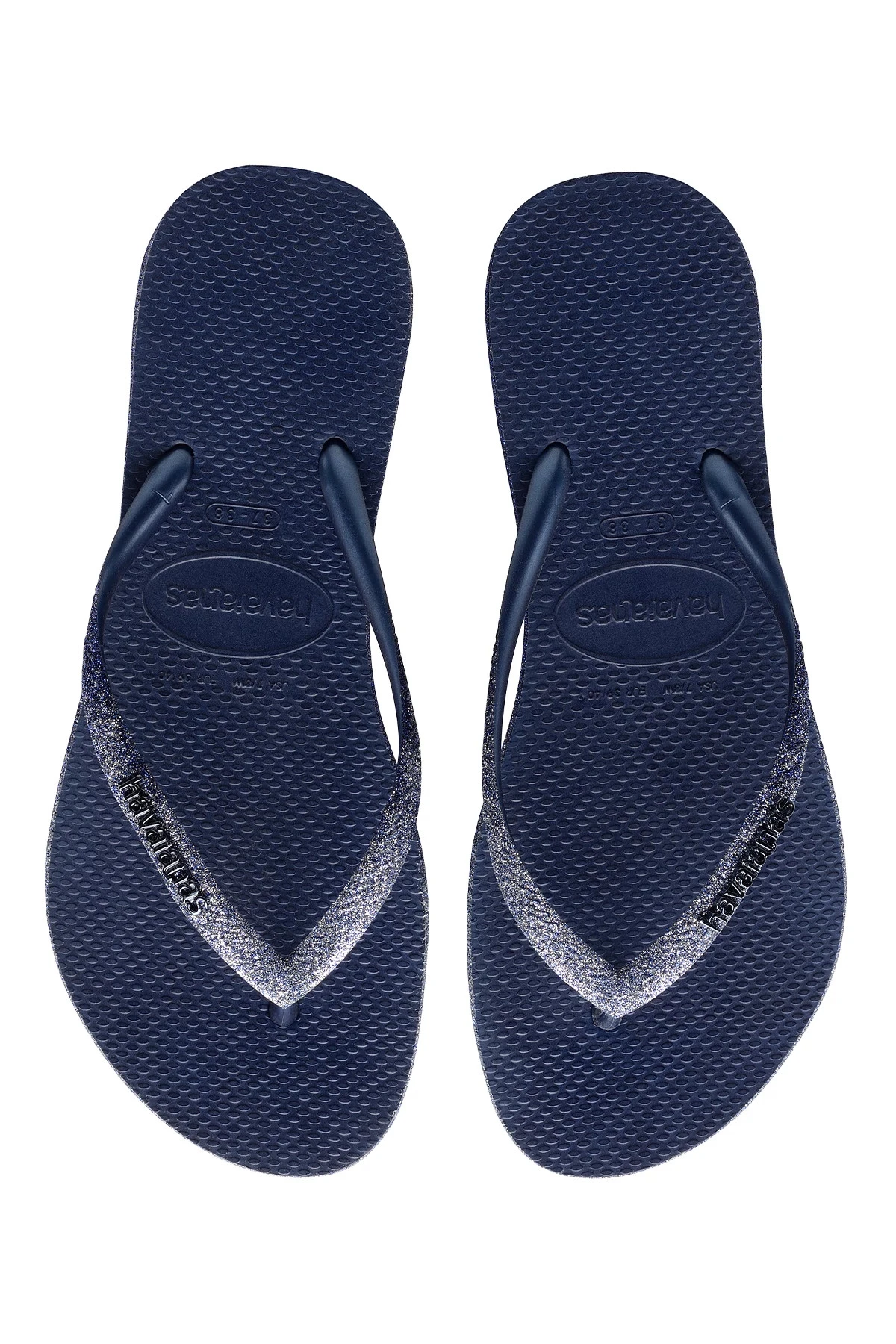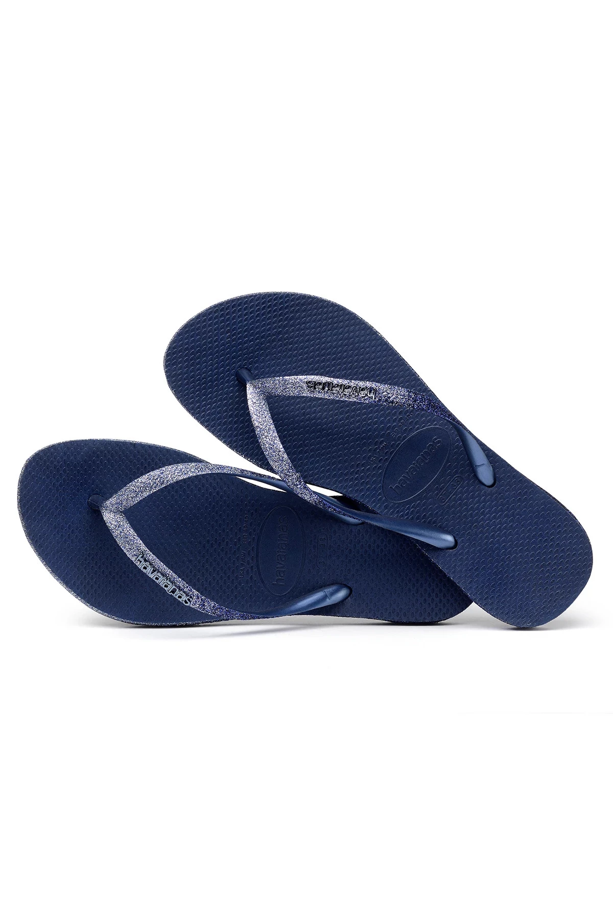 Slim Sparkle flip flops feature glitter coated straps and sole edges.