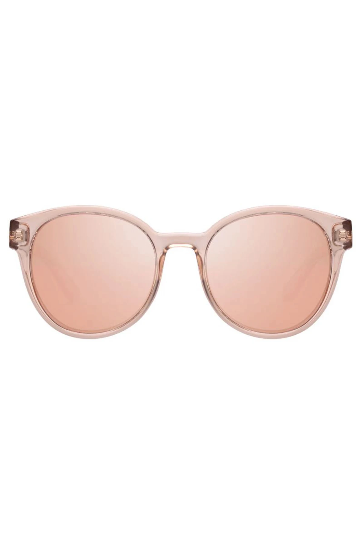 Paramount plastic round sunglasses with brass revo mirror lenses is a modern take on a fifties shape. Le Specs protective pouch and microfiber cleaning cloth included.
