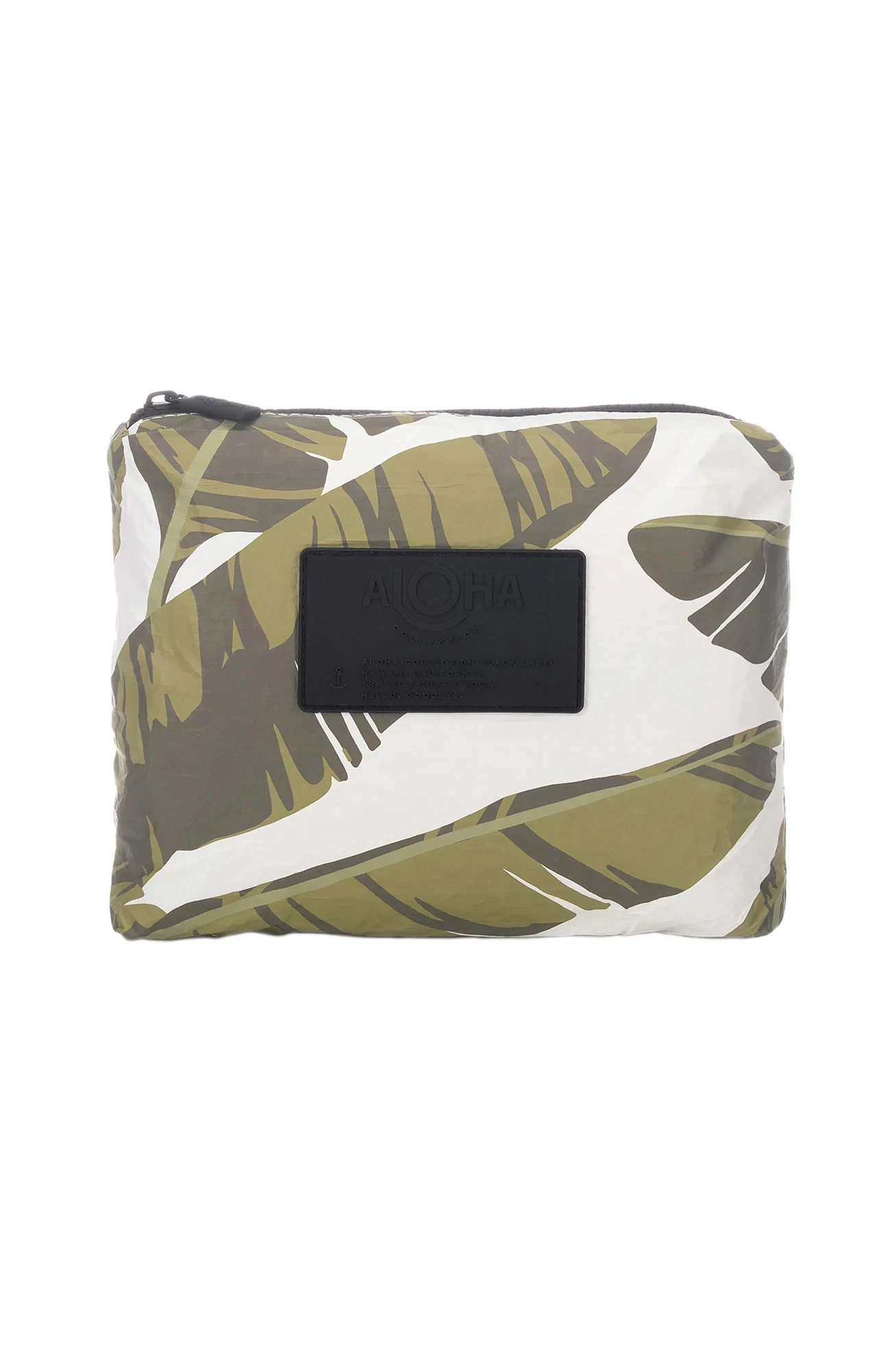 Lu’au small pouch features a classic palm print with a zipper closure.