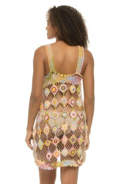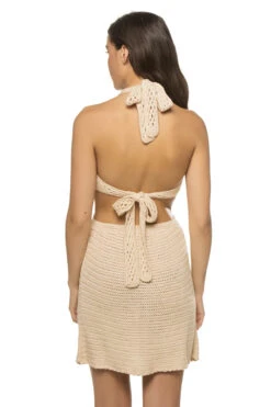 Pareo features a light chiffon fabrication with pom pom trim and offers a self tie waist.