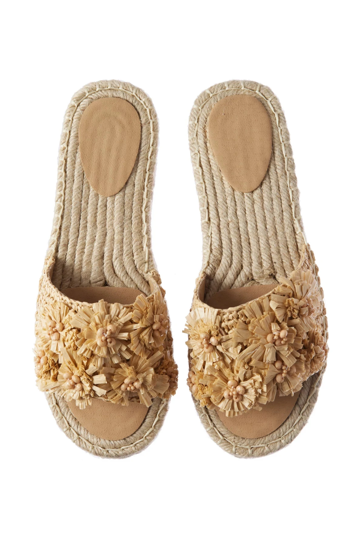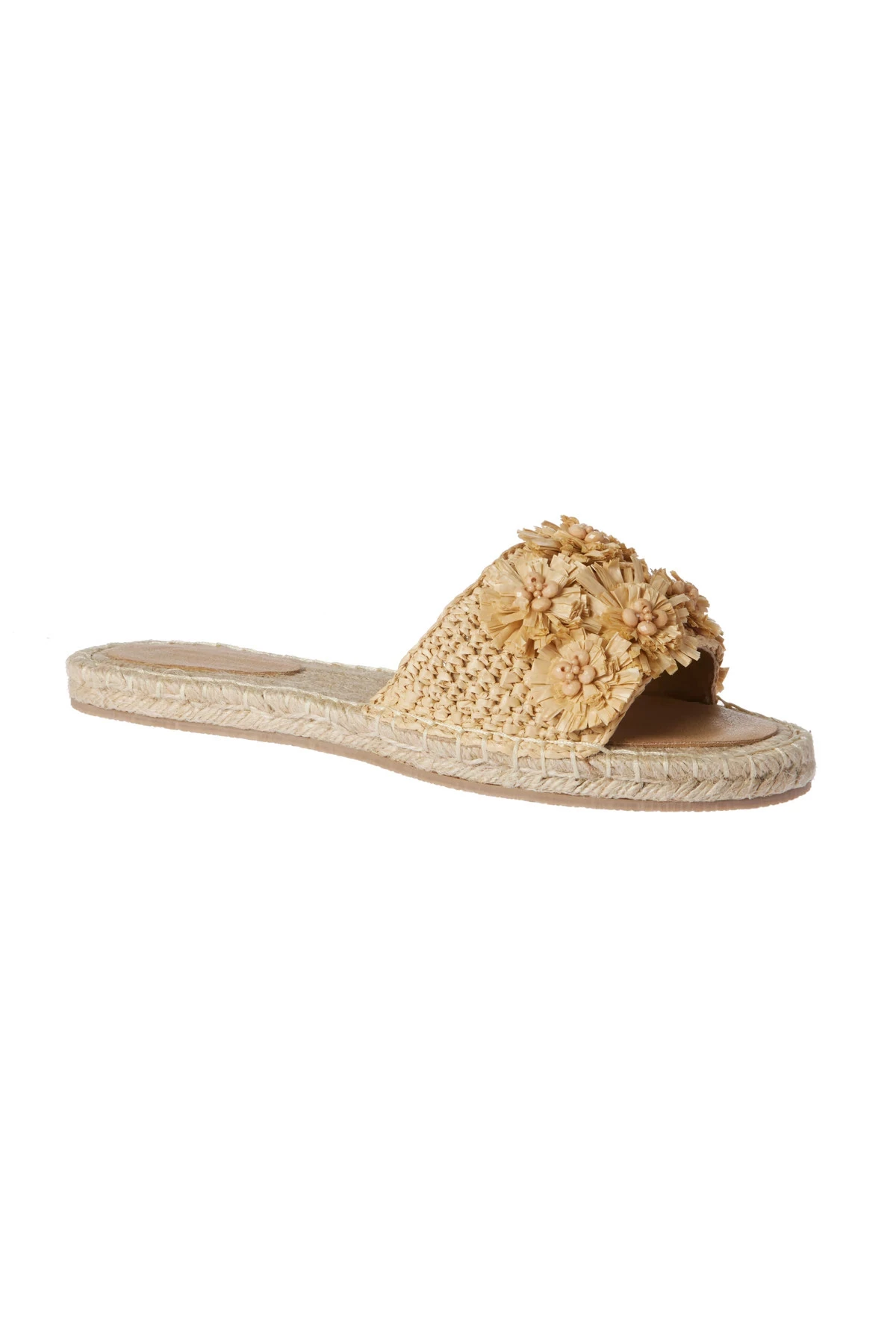 Slides feature floral raffia detail on the strap with a braided footbed.