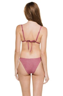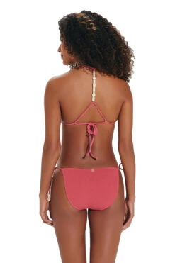 Bralette bikini top features a ribbed color block fabrication with a v-wire front and removable cups and offers wide adjustable straps and back ties.