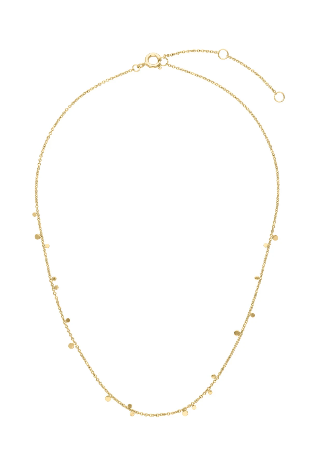 Sequins necklace features a gold chain with small sequin details and offers a clasp closure.