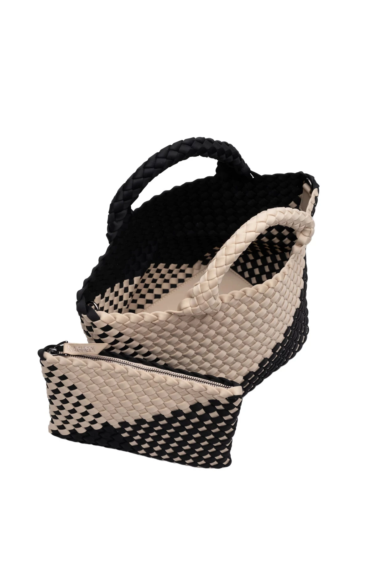 St. Barths mini tote is made from durable neoprene, making this stain resistant tote easy to clean and perfect for the beach. Interior pouch included.