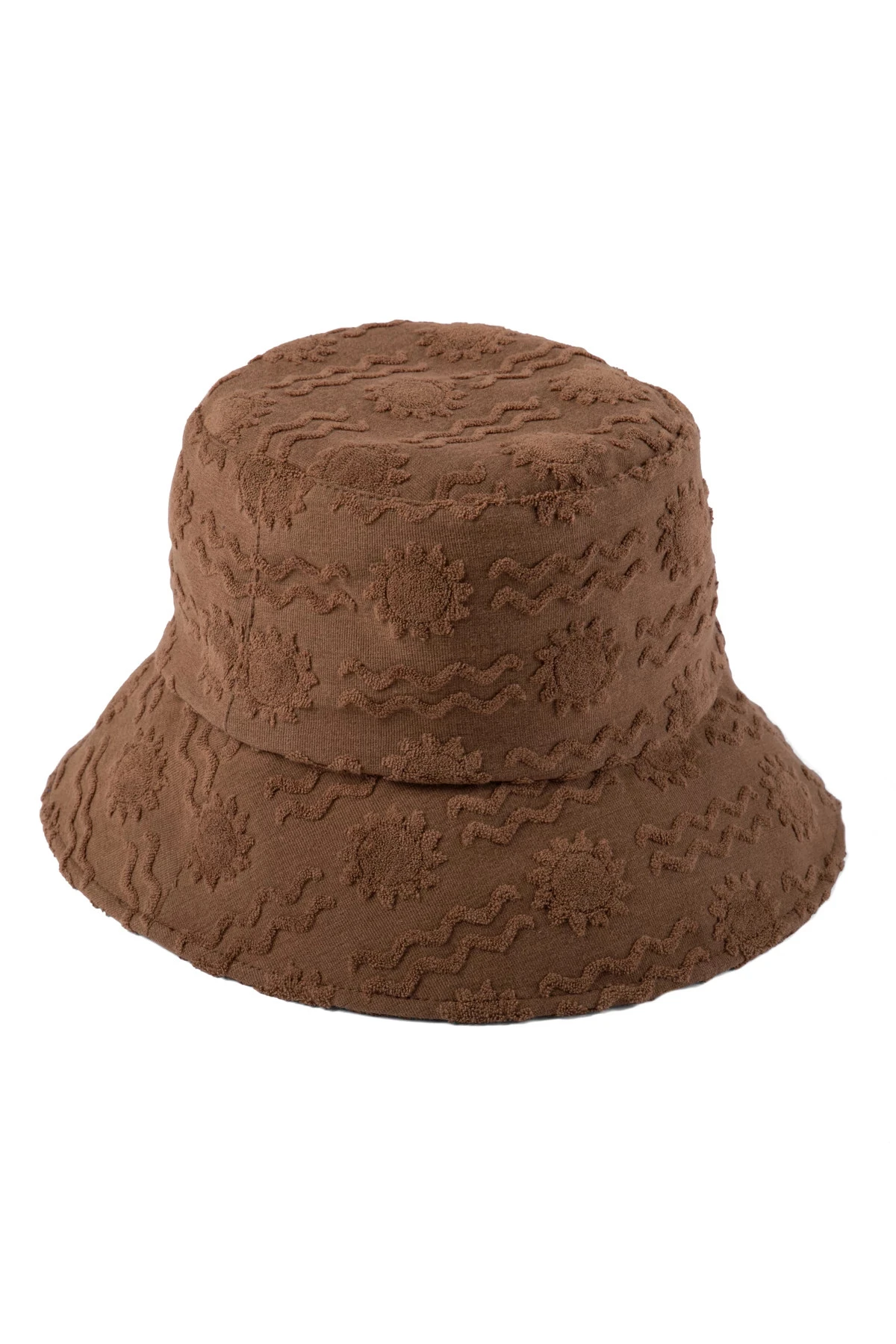 Summer of Sun bucket hat is as soft as it is durable featuring a terry embossed fabrication with wave and sun details.