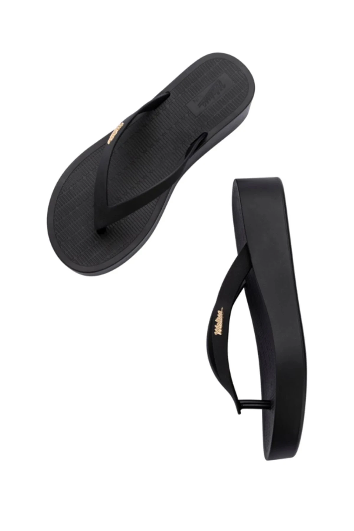 Sun Venice sandals are vegan, recyclable slip ins featuring a thick elevated platform sole and thong straps.