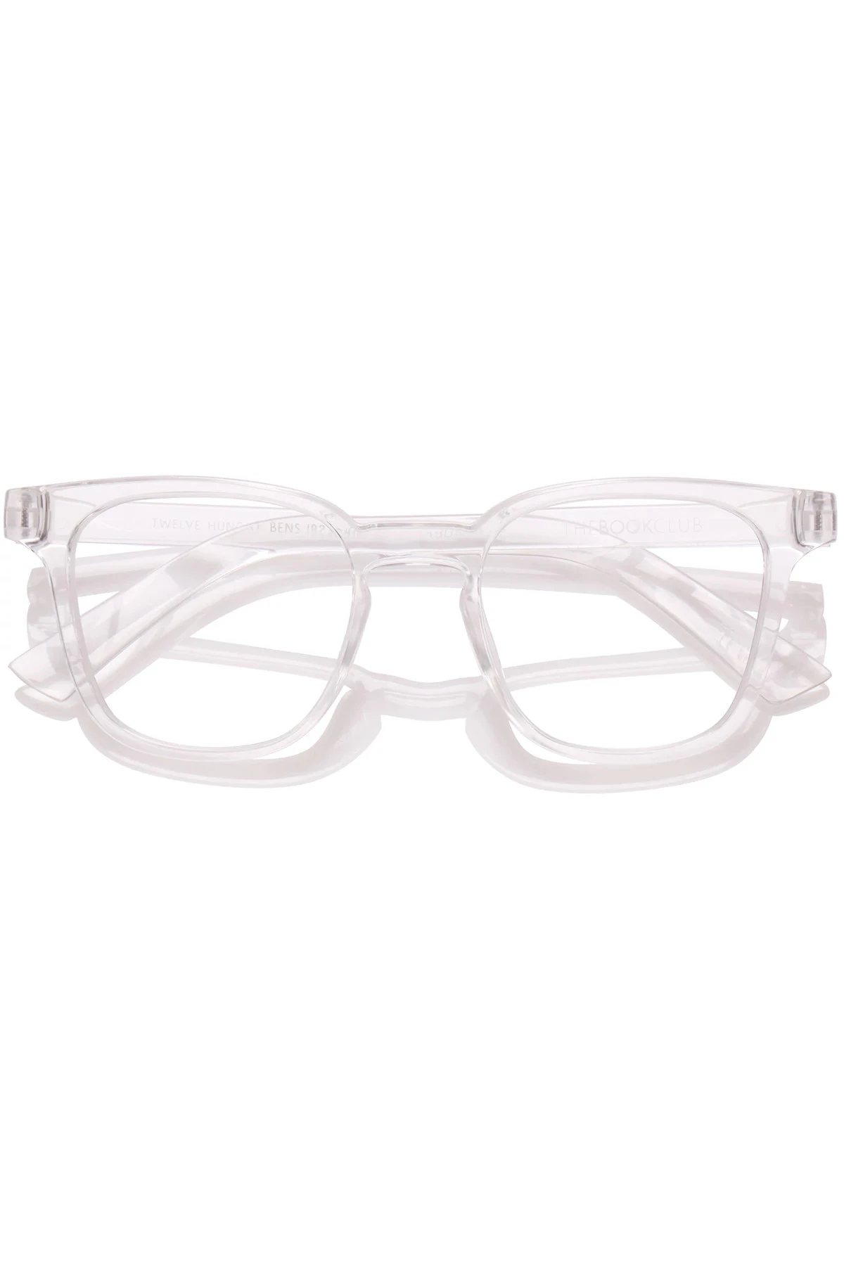 Twelve Hungry Bens reading glasses offer a masculine inspired frame shape with a sleek clear cellophane finish. Made from recyclable and BPA-free plastic for lightweight comfort. Anti-blue light lens coating reduces blue light intake by 30% to help lessen digital eye strain.